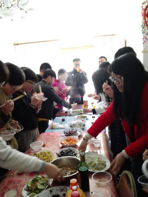 天朗气清,惠风和畅。初春的校园樱花烂漫、花香鸟语。上午九时许,涂家品老师、王波老师与大家一同来到活动现场,置备活动所需的材料。参与人员发挥特长,各显神通,有的负责包水饺、煮汤圆,有的负责洗菜、烧菜,场面热闹非凡。涂老师和王老师更是加入其中,以言传身教的方式向大家传递生活的酸甜苦辣。在活动中,大家一边处理食材,一边探讨新学期研会的工作方向,为接下来的学生服务工作做好规划。经过几个小时的努力,餐桌上便是硕果累累,大家品尝着自己的劳动成果,既感受了研会大家庭的温暖,又深刻领会了服务精神的内涵。随后,参与人员又开展了多种有趣益智游戏,两位老师更是在游戏中向大家普及心理健康知识,使在座的各位同学受益匪浅。下午五时,联谊活动在一片欢声笑语中落下帷幕。