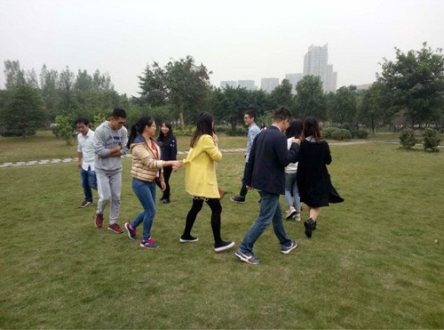 本次活动分为三个环节,第一个环节为“记住我是谁”,在主持人的引导下,大家通过做游戏的方式记住每个人的名字。这个游戏让大家更好地熟悉彼此,消除了彼此之间的陌生感,培养了各部门之间的竞争意识及凝聚力。第二个环节为游戏环节,有极其考验成员配合能力的“心心相印(背夹球)”游戏,本游戏两人需要步调一致、相互配合,提高了成员之间的默契度。有非常考验团队协作能力的“十人九足”游戏,既锻炼了大家的团队合作能力及协调能力,又促进了团队队员之间的配合和信任。还有非常锻炼大家应变能力的“一块五”游戏,其欢快而紧张的氛围使活动进入高潮。第三个环节为总结发言,实践部部长首先对本次活动得以顺利进行、以及大家的积极参与表示感谢,然后由大家分别对本次活动内容发表了自己的看法。最后,素质拓展活动在大家的欢声笑语中圆满结束。