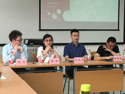 2017年6月5号晚上7:00,由行政法学院研究生会主办的考博经验交流会在致知楼5303教室召开。本次交流会由研究生会宣传部干事廖靓主持,硕士研究生辅导员涂家品老师、研究生会主席张弦、2014级硕士研究生彭军、许天问、钟浩南、原欣到场参加。