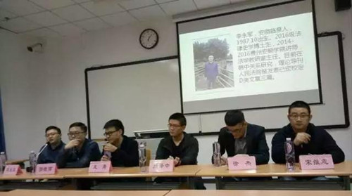 2017年11月1日晚7点整,由行政法学院研究生会主办的研究生新老生经验交流会,在丽玉致知楼5306教室顺利召开。应邀出席本次交流会的有:2016级法律史博士研究生李永军,2017级法学理论博士研究生郭晓雨、王勇,2015级宪法学与行政法学硕士研究生周泽中,2015级法学理论硕士研究生徐杰,2016级法学理论硕士研究生宋维志。