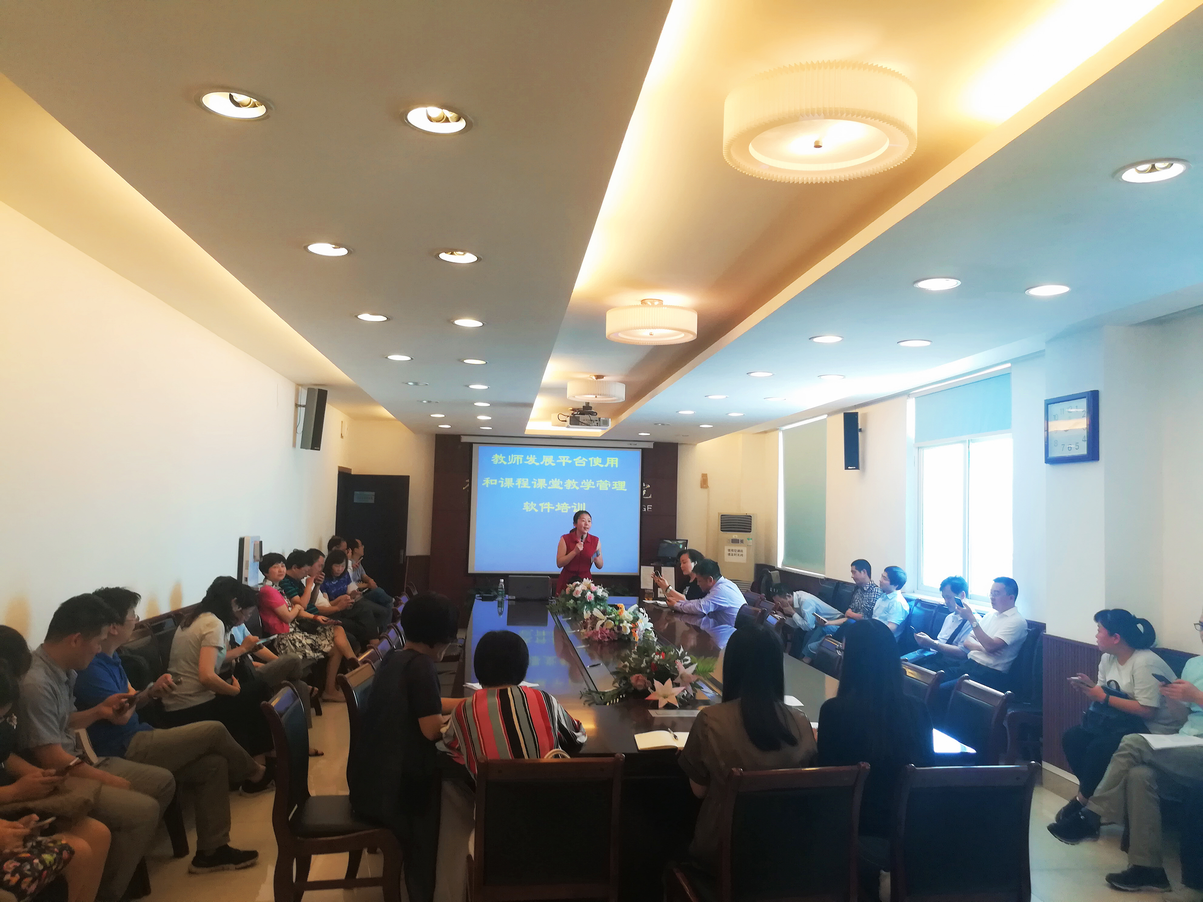 会议伊始,西南政法大学教师工作部的陈应琴主任和朱洁老师对我院全体教师开展了“教师发展平台使用和课程课堂教学管理软件培训”的专题讲座。在陈主任和朱老师的带领下,指导老师们拿起手机下载“学习通”,一步步的指导老师们利用该平台,创建自己的网络课程和网络班级,实现网上教学和师生互动交流。