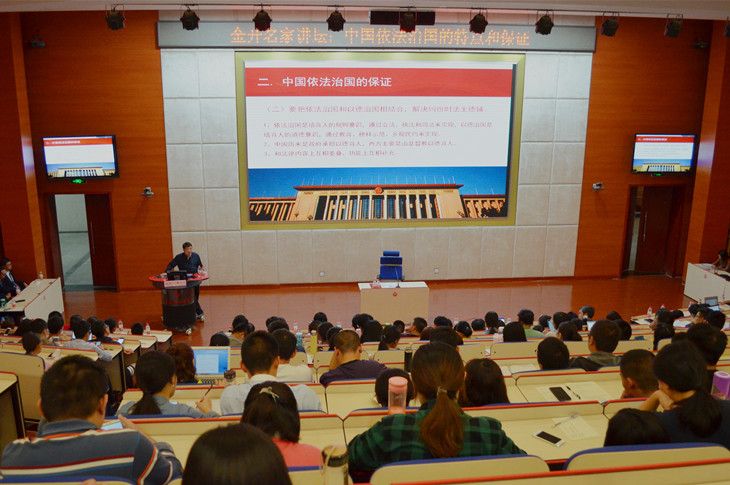 10月7日晚,著名法理学家郝铁川教授在毓才楼三楼学术报告厅出席金开名家讲坛,主讲题为“中国依法治国的特点和保证”的学术讲座。本次讲座由付子堂校长主持,周祖成教授、宋玉波教授、周尚君教授、雷勇教授、张震教授、胡兴建副教授、杨天江副教授、黄金华副教授等众多教授作为嘉宾出席,我校本科生、硕士、博士研究生150余人参加了此次讲座。